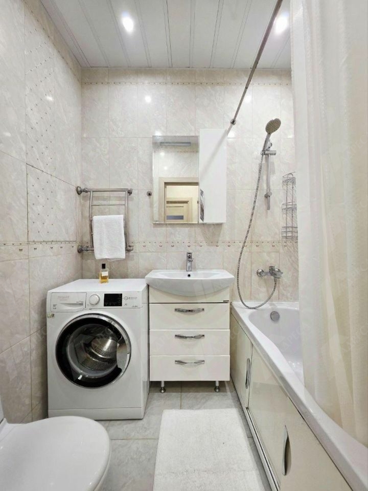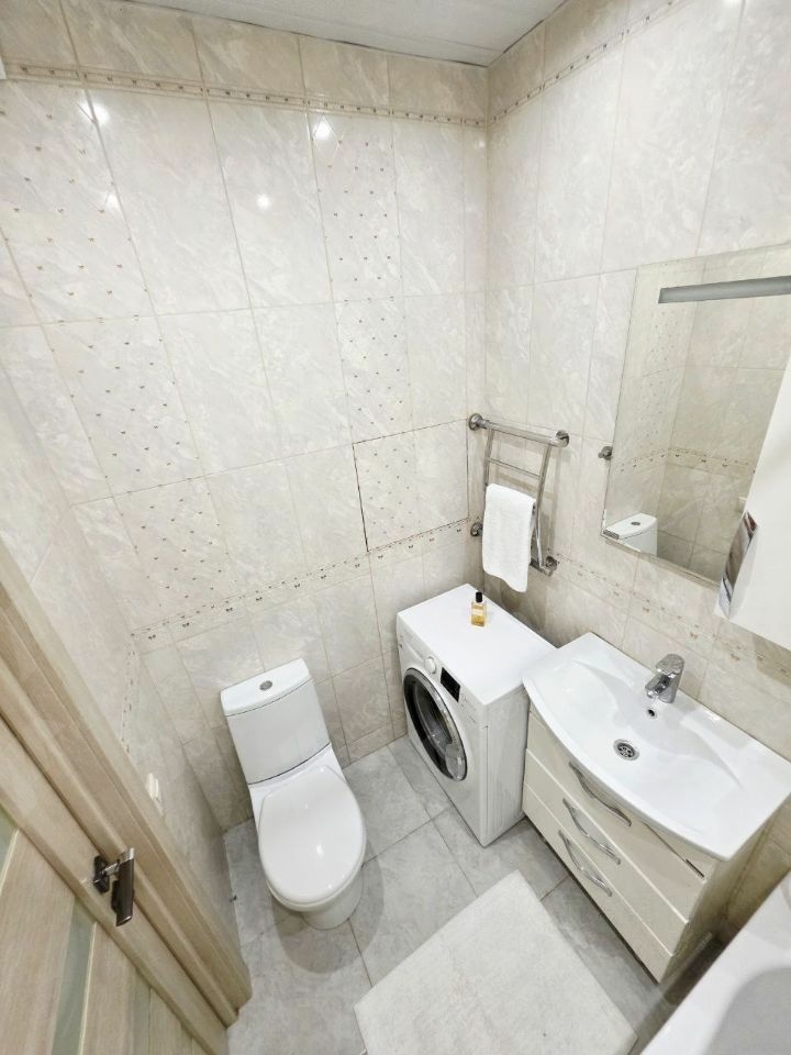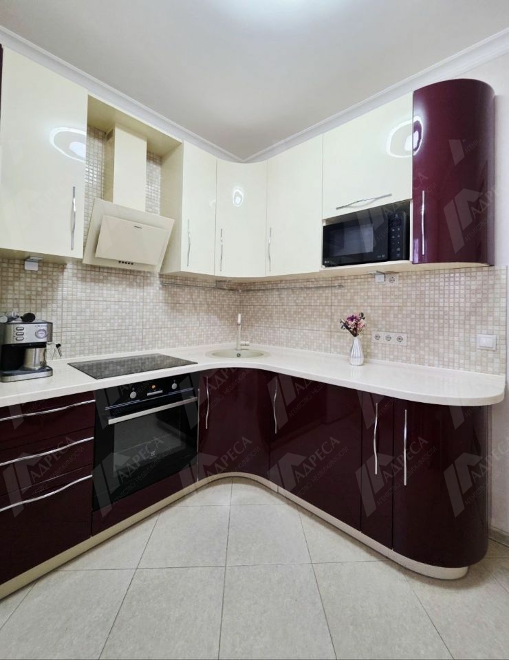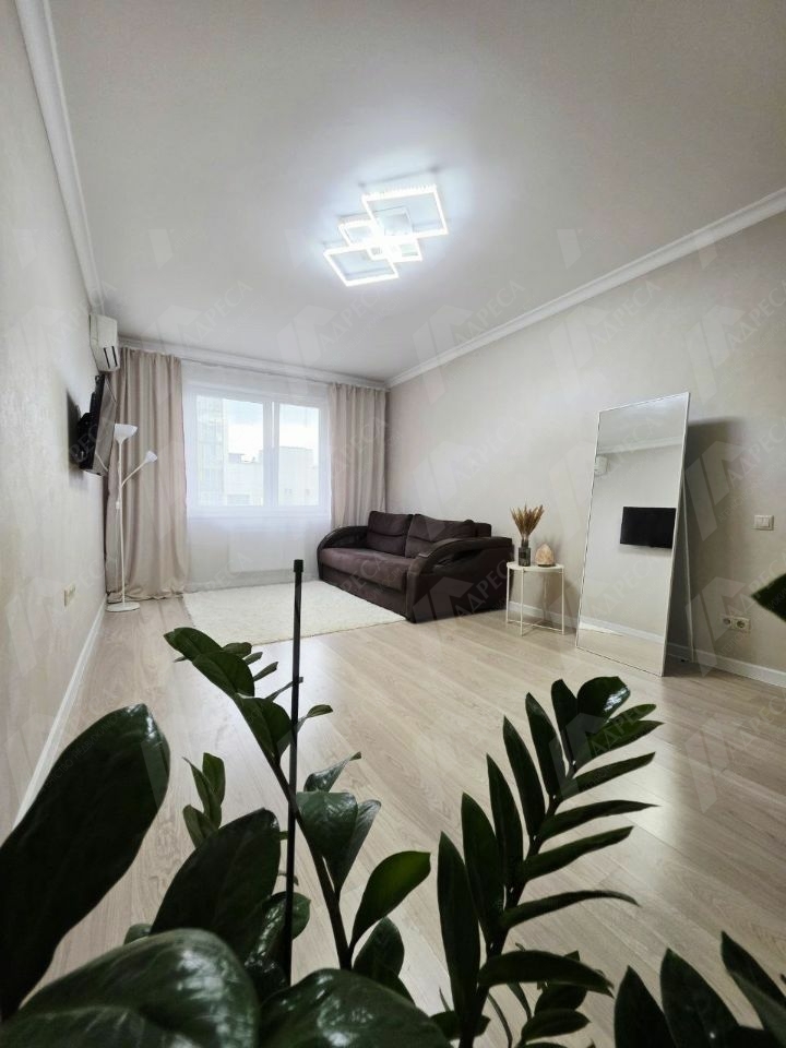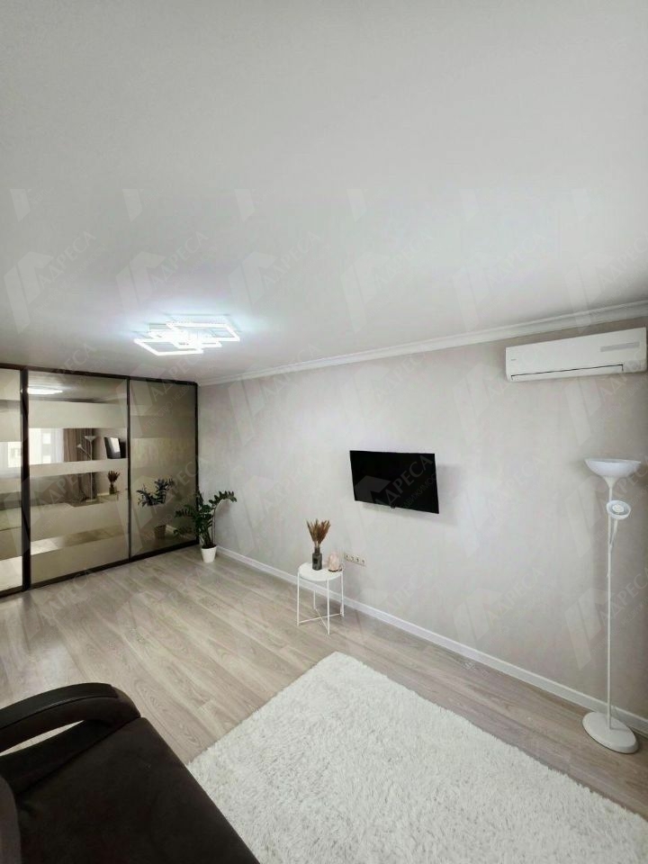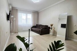 В ней выполнен качественный ремонт, на кухне гарнитур с плитой и духовым шкафом, микроволновкой, чайником, холодильником. В комнате удобный диван, кондиционер, места хранения
